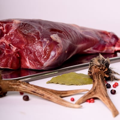 je nach Verfügbarkeit: Rehwild, Rotwild oder Wildschwein